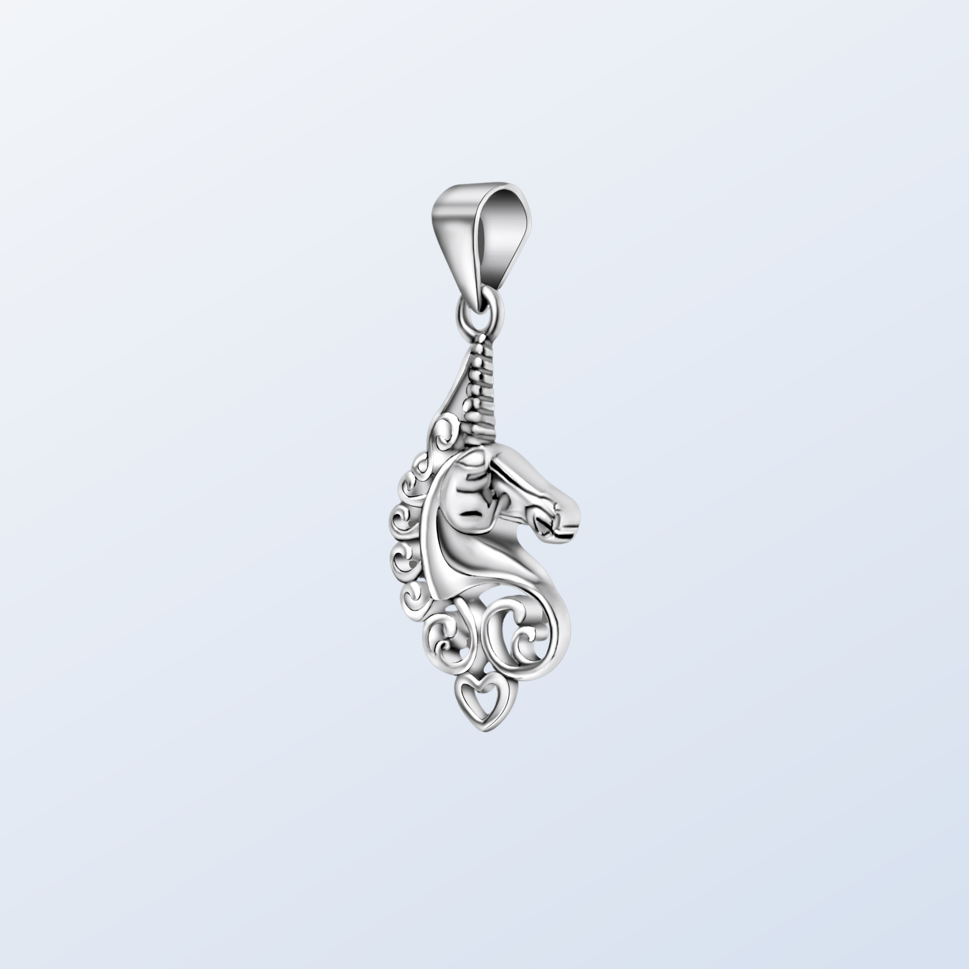 "Introducing 'The Loyal Unicorn' pendant, a whimsical emblem crafted from sterling silver. Inspired by mythical grace and unwavering loyalty, this pendant captures the essence of enchantment and companionship. Elevate your style with a touch of mystique and adorn yourself with the symbol of enduring fidelity and magic.